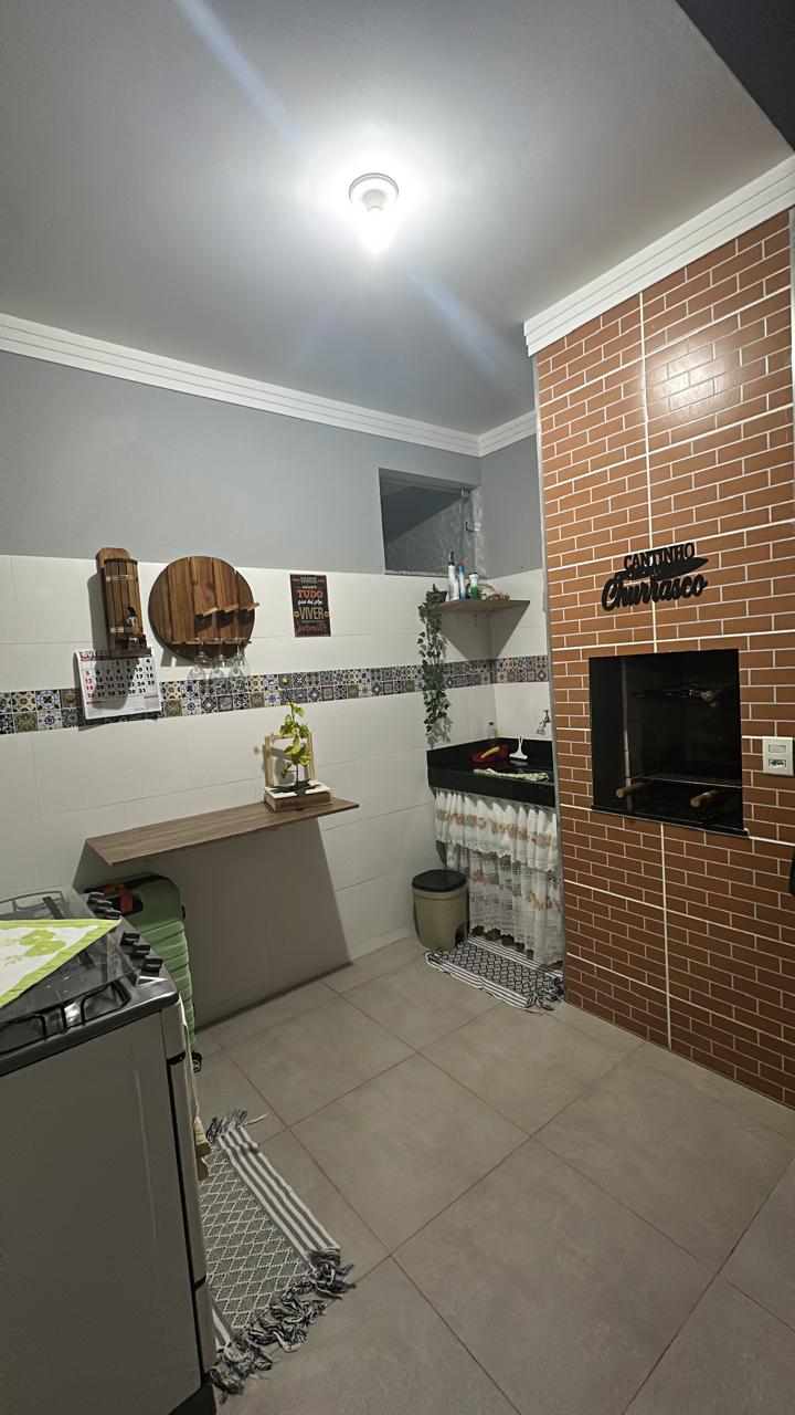 São 125 metros ,82,5 de construção,sala espaçosa conjugada com copa e cozinha planejada,um banheiro social e o outro suite,área de lavanderia e churrasco,garagem coberta com colonial e área e lavanderia.